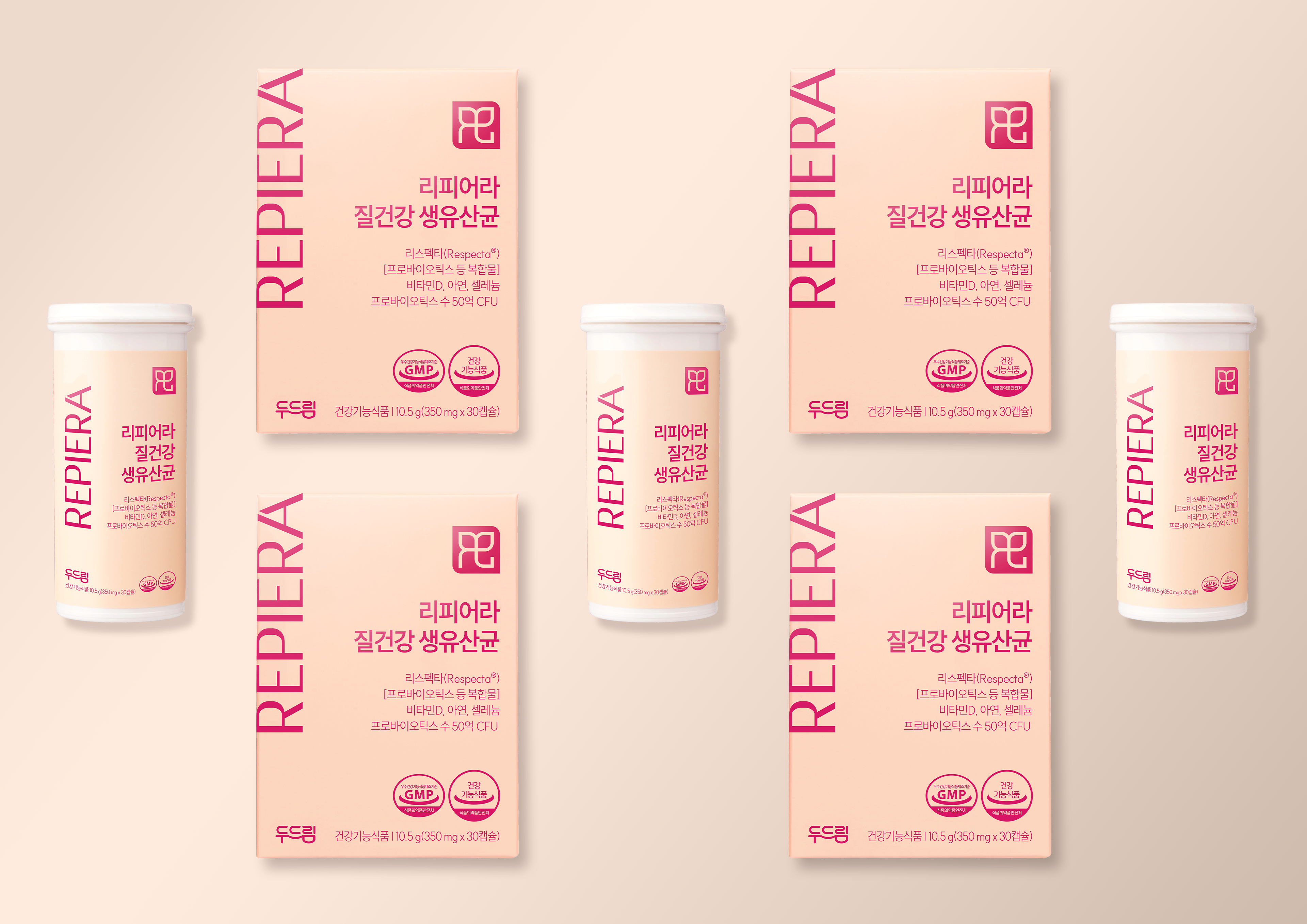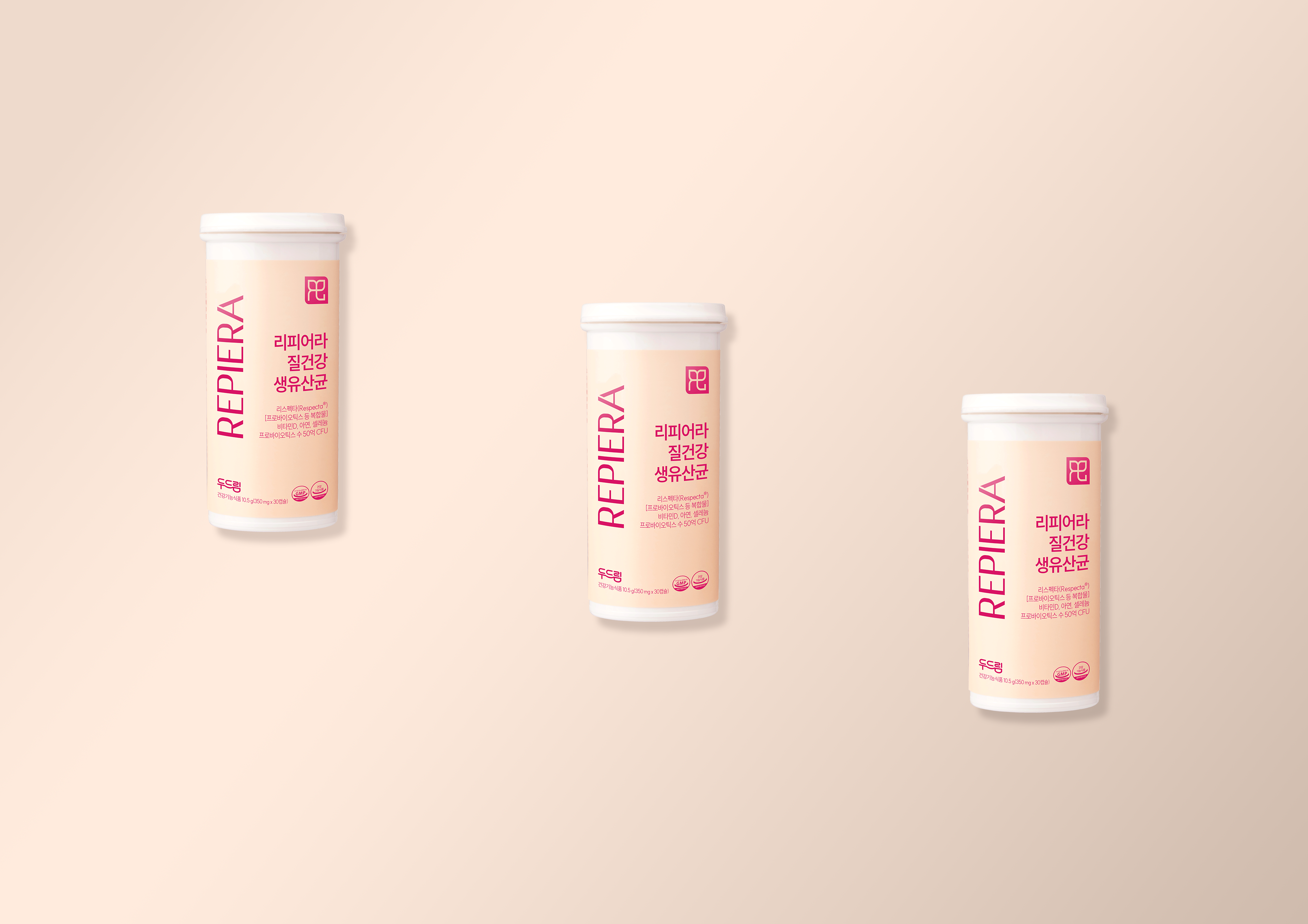 여성의 아름다움을 지키는 '리피어라'의 브랜드 철학을 화사하고 따뜻한 파스텔 톤의 컬러 팔레트로 표현하여 브랜드 친밀도를 높였습니다. 패키지 전면의 직선적인 로고 배치와 여백의 미를 통해 세련된 인상을 주었으며, 휴대용 용기와의 시각적 통일감으로 브랜드 아이덴티티를 강화했습니다. 기능적 설명을 넘어 감각적인 비주얼로 타겟의 소유욕을 자극하는 감성 마케팅 관점의 디자인 프로세스를 담았습니다.