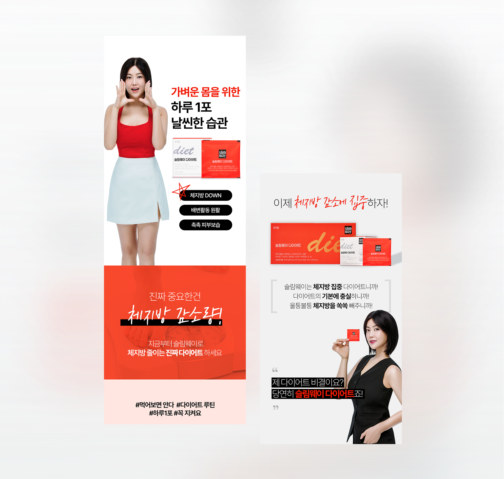 브랜드 컬러로 결심과 집중력을 강하게 전달했습니다.